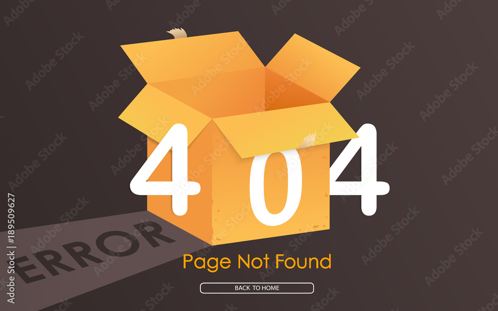 Poster 404 box error page not found vector graphic bacground