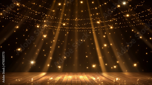 The watermark will not be included on Poster.: A background image of a stage lit up with spotlights and stars, generative ai