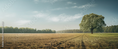 The watermark will not be included on Poster.: A barren field with trees - generative ai