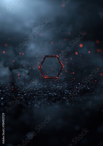 Poster a black and red hexagon is surrounded by a blurry, hazy background - Posters Poster a black and red hexagon is surrounded by a blurry, hazy background - Posters