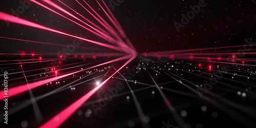 The watermark will not be included on Poster.: A black background with laser line patterns shining brightly in the dark -