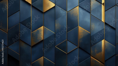 Poster a blue and gold patterned wall with a gold border. the pattern is made up of triangles and squares - Posters Poster a blue and gold patterned wall with a gold border. the pattern is made up of triangles and squares - Posters