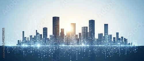 Poster a blue and white image of a network of lines and dots, blue technology background with circuit board