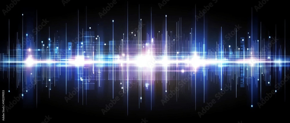 Poster a blue and white image of a network of lines and dots, blue technology background with circuit board