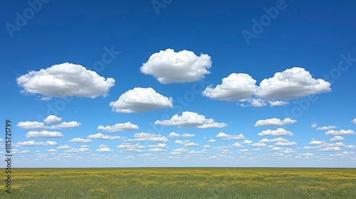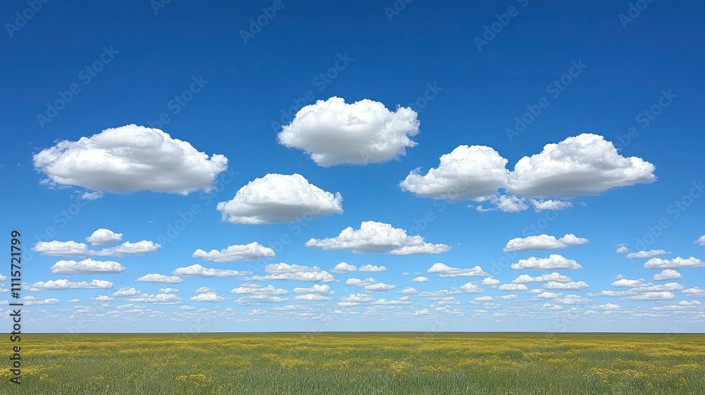 Poster : A bright sky with scattered cumulus clouds creating a serene and peaceful atmosphere perfect for bac
