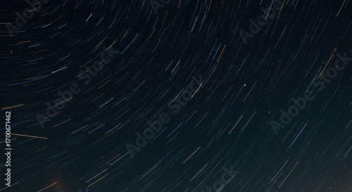 The watermark will not be included on Poster.: A captivating night sky displays trails of starlight, creating a mesmerizing and dynamic celestial s