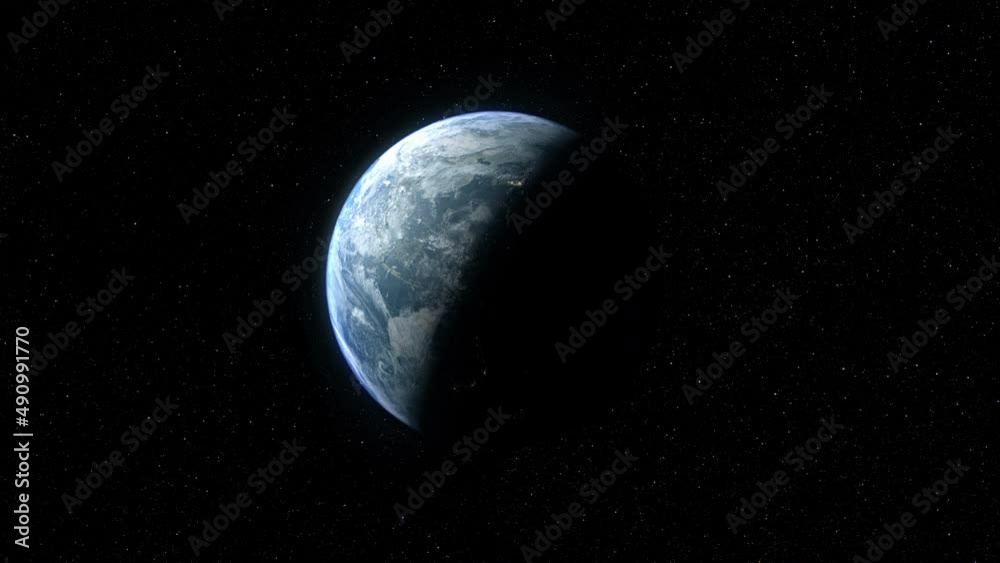 The watermark will not be included on Poster.: A cinematic simulation dropping out of light speed approaching planet earth - world map element of th