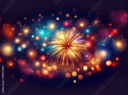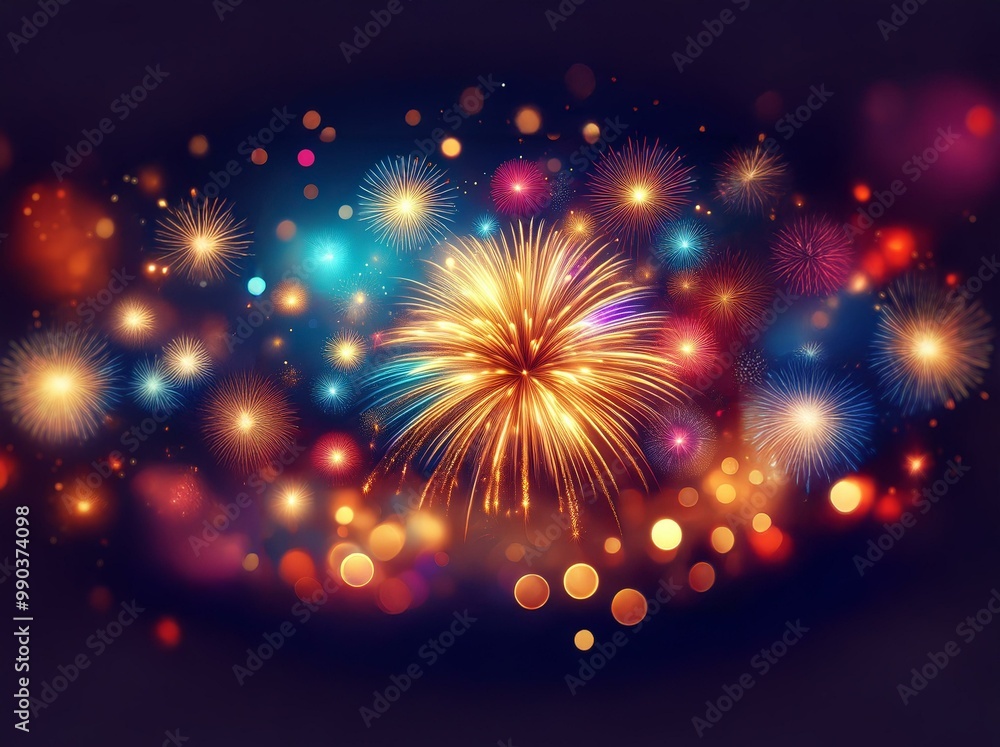Poster a colorful display of fireworks with a blurry background of lights. - Posters Poster a colorful display of fireworks with a blurry background of lights. - Posters