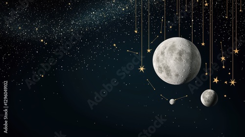 The watermark will not be included on Poster.: A composite image of the moon, earth, and other celestial objects, with labels and arrows pointing o
