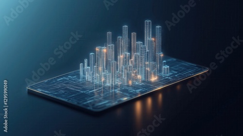 Poster a computer screen shows a cityscape with buildings and a skyline - Posters Poster a computer screen shows a cityscape with buildings and a skyline - Posters
