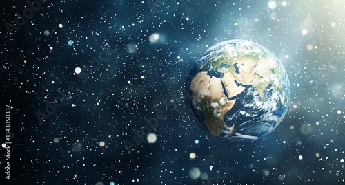 The watermark will not be included on Poster.: A dark backdrop serves as the setting for a bright blue globe encircled by network connections, impl