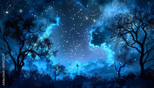 The watermark will not be included on Poster.: A dark sky with a few trees and a few stars by ai generated image