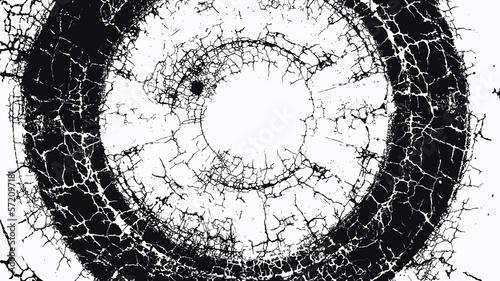 Poster a digital illustration of an abstract background with black cracks in a circle on white background.