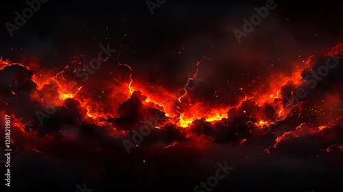 Poster a dramatic display of fiery orange and red flames entwined with dark clouds, creating an intense and - Posters Poster a dramatic display of fiery orange and red flames entwined with dark clouds, creating an intense and - Posters