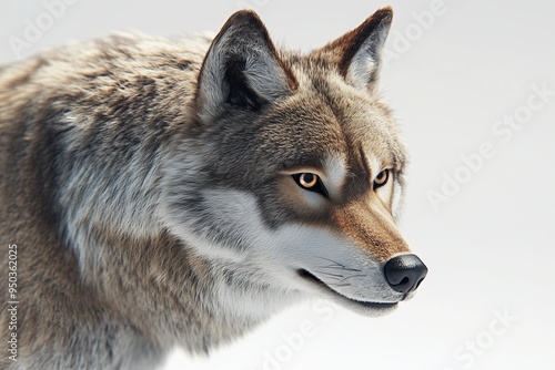 Poster a dynamic 3d of a wolf in a close up view, displaying its fierce and commanding nature. the wolf is