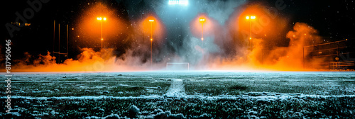 The watermark will not be included on Poster.: A field covered in snow with a few lights in the background
