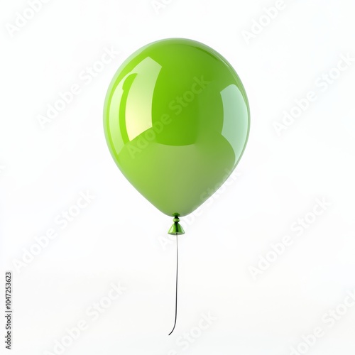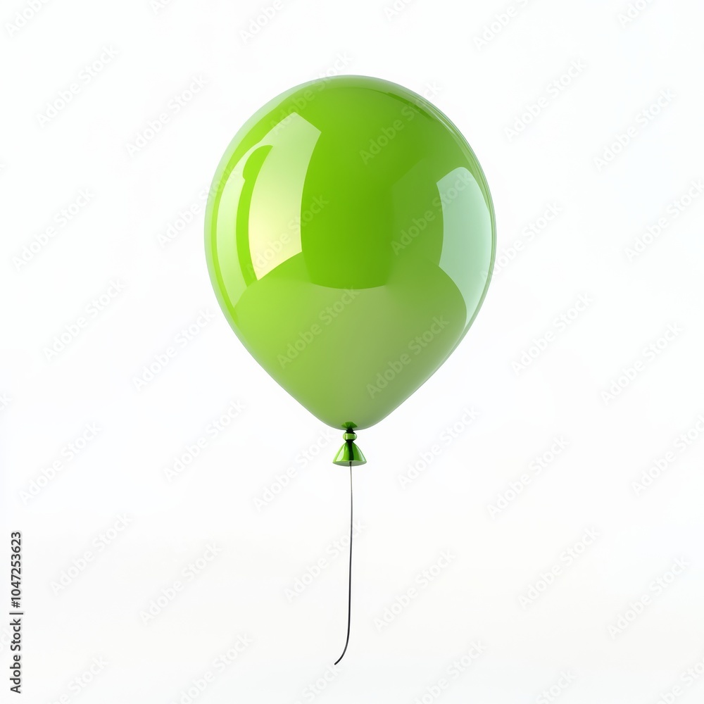 The watermark will not be included on Poster.: A floating green balloon with a shiny surface, isolated on a clean white background, creating a simp
