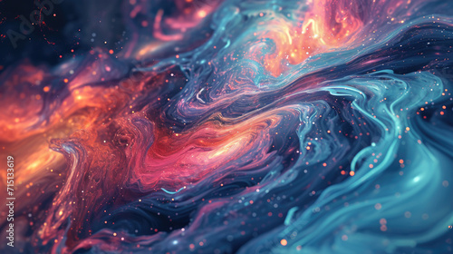 Poster a fluid background with a cosmic theme featuring a swirling galaxy in outer space colors