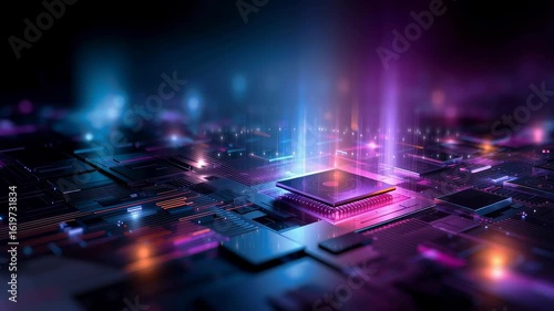 The watermark will not be included on Poster.: A futuristic abstract technology background with neon lights and glowing circuit lines