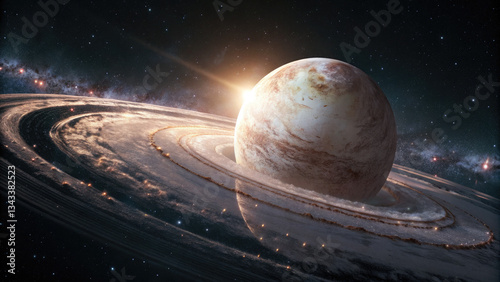 Poster a glowing planetary disk with swirling auroras, floating in a dark cosmic void, radiating soft ether