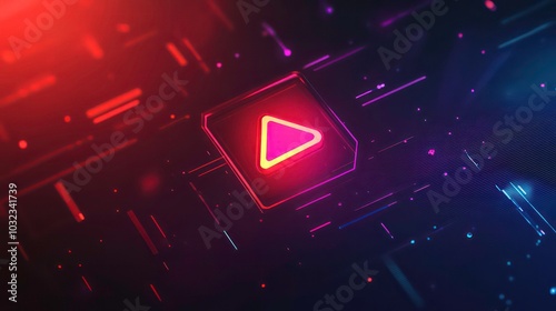 Poster a glowing play button icon on a futuristic circuit board. - Posters Poster a glowing play button icon on a futuristic circuit board. - Posters