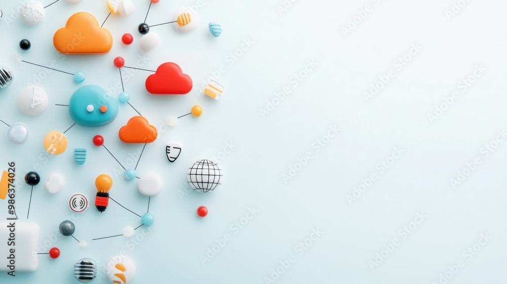 Poster a graphic representation of a cloud network, with interconnected devices and services. - Posters Poster a graphic representation of a cloud network, with interconnected devices and services. - Posters