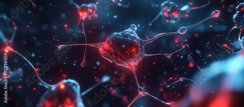 The watermark will not be included on Poster.: A group of cells resembling neurons with visible connections inside the nervous system, representing