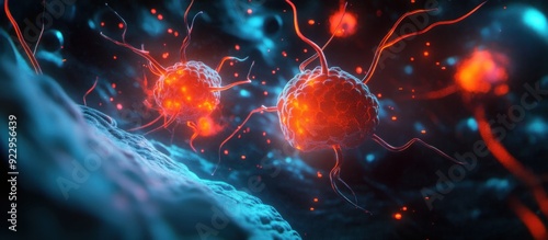 The watermark will not be included on Poster.: A group of cells resembling neurons with visible connections inside the nervous system, representing