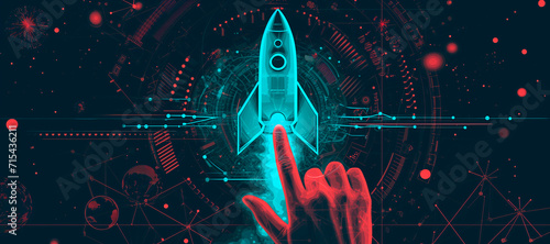 The watermark will not be included on Poster.: A hand touching a rocket - how to improve web search engine ranking?, in the style of a futuristic sp