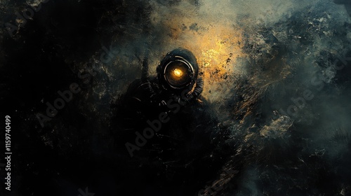 Poster a lone astronaut in a dark and dusty cave with a glowing light emanating from his helmet, creating a - Posters Poster a lone astronaut in a dark and dusty cave with a glowing light emanating from his helmet, creating a - Posters