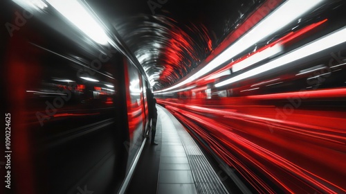 Poster a lone figure stands on a subway platform as a train speeds by, creating a blur of red and white lig - Posters Poster a lone figure stands on a subway platform as a train speeds by, creating a blur of red and white lig - Posters