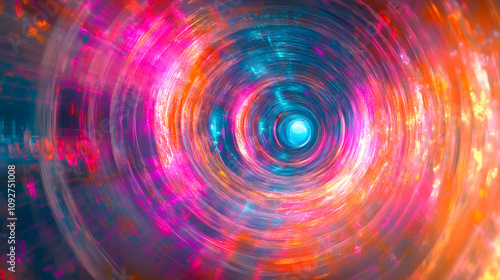 Poster a mesmerizing scene depicting an abstract flight through a retro neon hyper warp space tunnel. - Posters Poster a mesmerizing scene depicting an abstract flight through a retro neon hyper warp space tunnel. - Posters