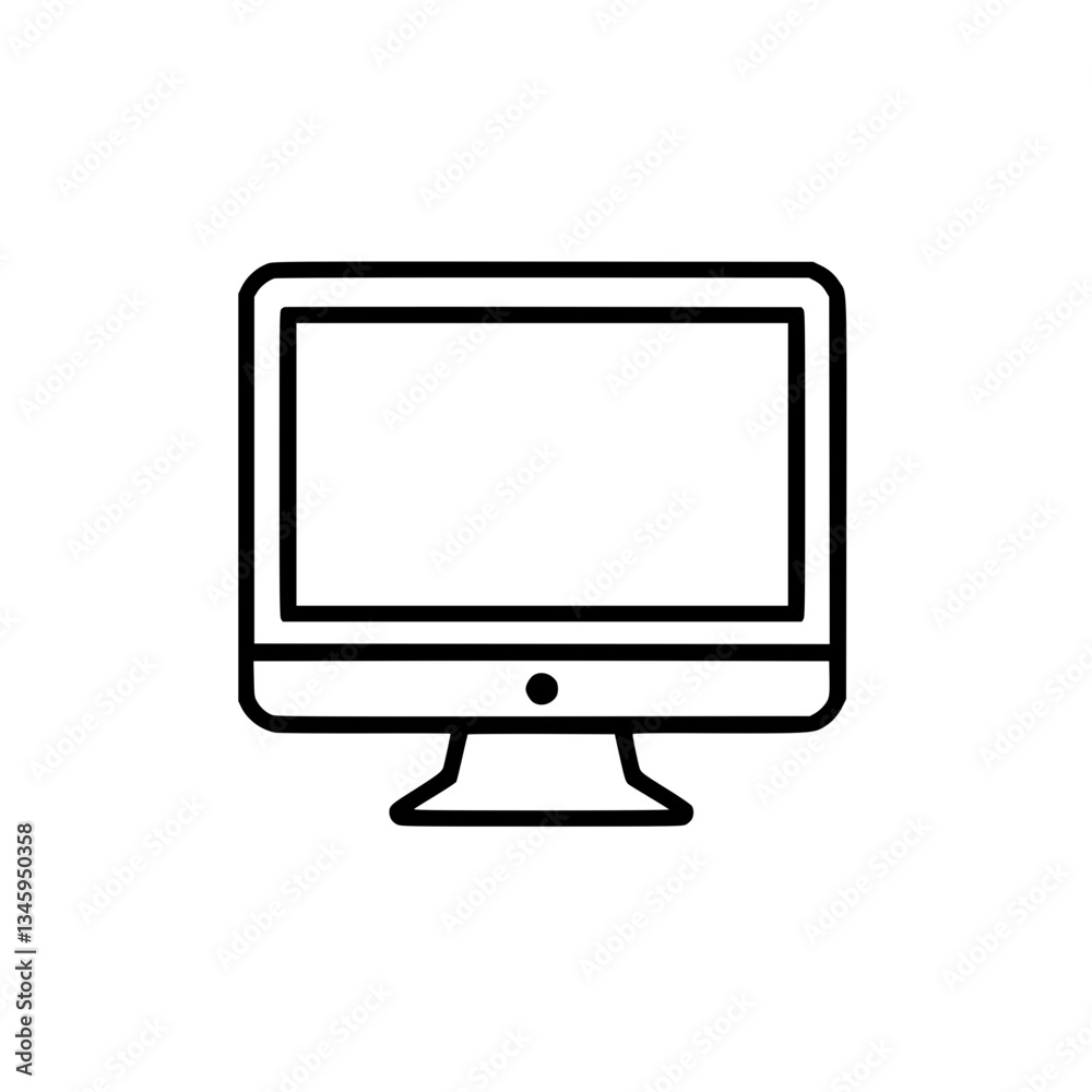 The watermark will not be included on Poster.: A minimalist outlined illustration of a desktop computer monitor depicting technology computing and