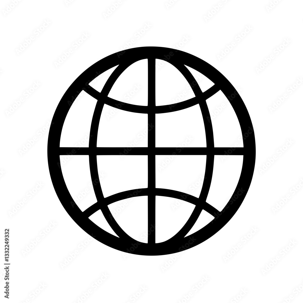 The watermark will not be included on Poster.: A minimalist vector icon displays a globe represented by a circle intersected with curved and straig