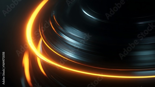 Poster a modern abstract background featuring a glowing ring of light on a dark metallic surface, creating