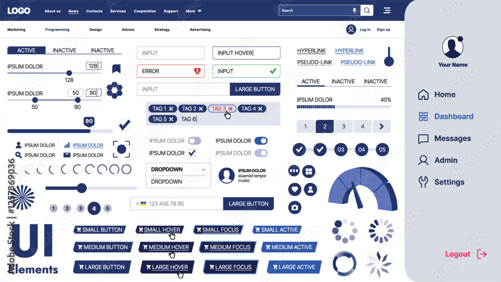 Poster a modern ui kit featuring a collection of buttons, icons, navigation menus, and responsive design el - Posters Poster a modern ui kit featuring a collection of buttons, icons, navigation menus, and responsive design el - Posters