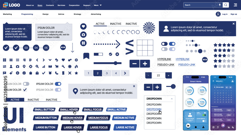 Poster a modern ui kit featuring a collection of buttons, icons, navigation menus, and responsive design el - Posters Poster a modern ui kit featuring a collection of buttons, icons, navigation menus, and responsive design el - Posters