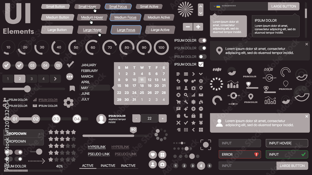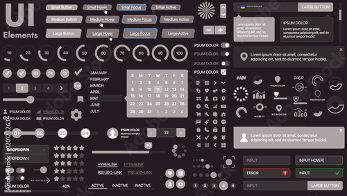 Poster a modern ui kit featuring a collection of buttons, icons, navigation menus, and responsive design el - Posters Poster a modern ui kit featuring a collection of buttons, icons, navigation menus, and responsive design el - Posters