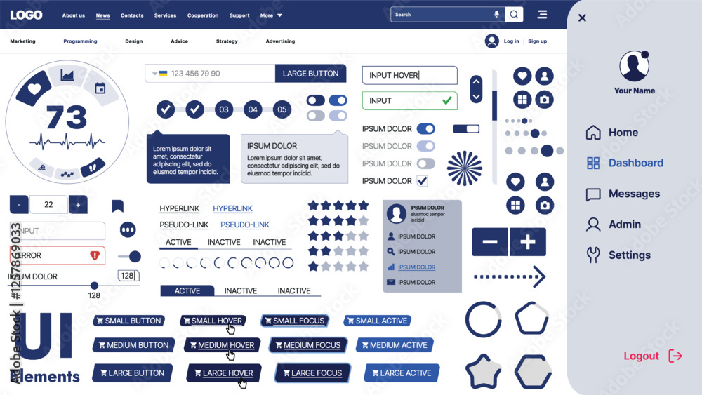 Poster a modern ui kit featuring a collection of buttons, icons, navigation menus, and responsive design el - Posters Poster a modern ui kit featuring a collection of buttons, icons, navigation menus, and responsive design el - Posters