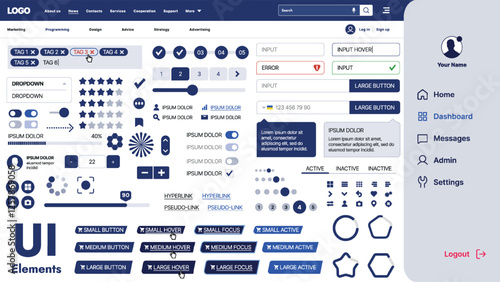 Poster a modern ui kit featuring a collection of buttons, icons, navigation menus, and responsive design el - Posters Poster a modern ui kit featuring a collection of buttons, icons, navigation menus, and responsive design el - Posters