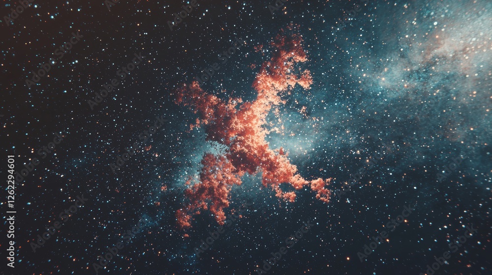 The watermark will not be included on Poster.: A molecule is depicted in space as an abstract form, where radiant atoms are linked by lines