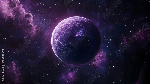 Poster a purple planet is floating in space. the sky is filled with stars and the planet is surrounded by a - Posters Poster a purple planet is floating in space. the sky is filled with stars and the planet is surrounded by a - Posters