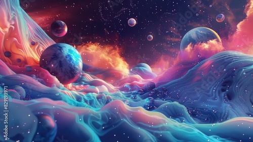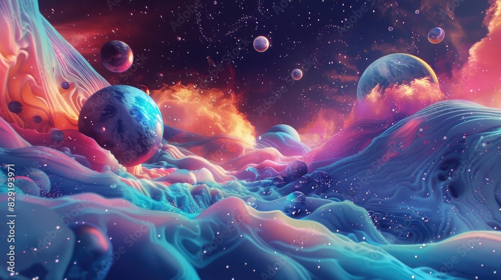 The watermark will not be included on Poster.: A scene in space that is abstract and surreal