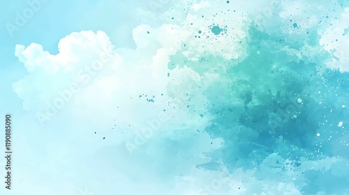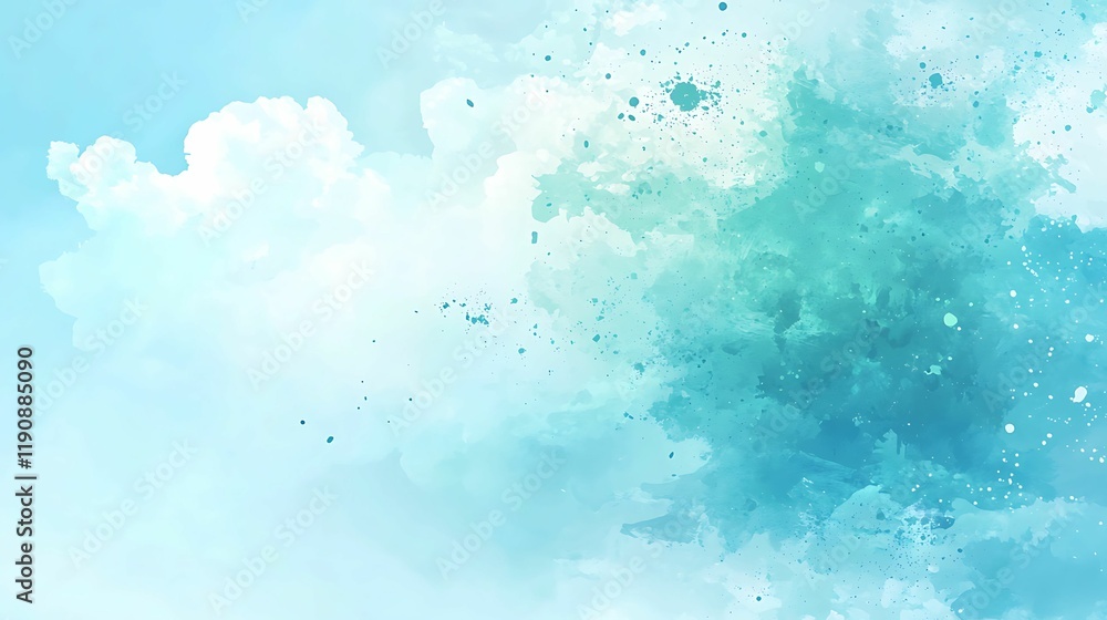 The watermark will not be included on Poster.: A serene blue abstract background featuring soft clouds and a splash of teal, evoking calmness and c