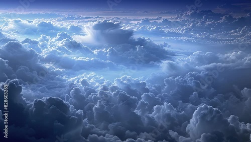 Poster a serene image of pearly white clouds shining against the deep indigo sky creating a peaceful atmosp - Posters Poster a serene image of pearly white clouds shining against the deep indigo sky creating a peaceful atmosp - Posters