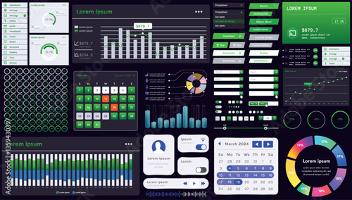 The watermark will not be included on Poster.: A set of modern interface elements for business applications and websites: buttons, charts, menus, g