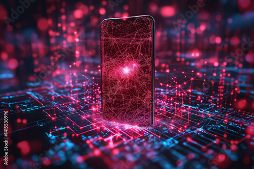 The watermark will not be included on Poster.: A sleek mobile technology background highlighting devices and connectivity -