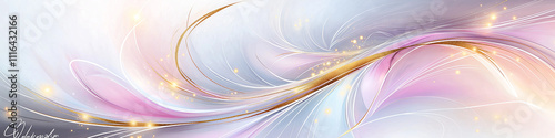 The watermark will not be included on Poster.: A soft flowing abstract of pink and gold lines and shapes on white background -