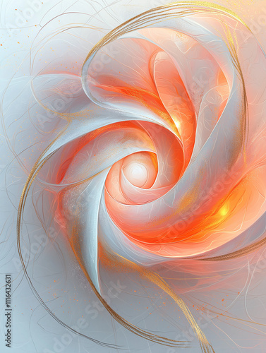 The watermark will not be included on Poster.: A soft flowing abstract of pink and gold lines and shapes on white background -
