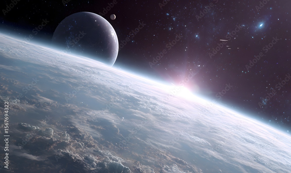Poster a space-based image of an enigmatic solar system with strange planets and futuristic ships gliding t - Posters Poster a space-based image of an enigmatic solar system with strange planets and futuristic ships gliding t - Posters